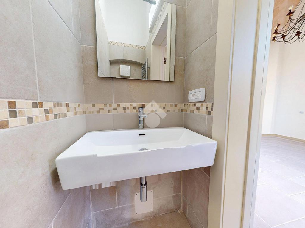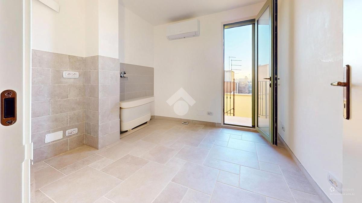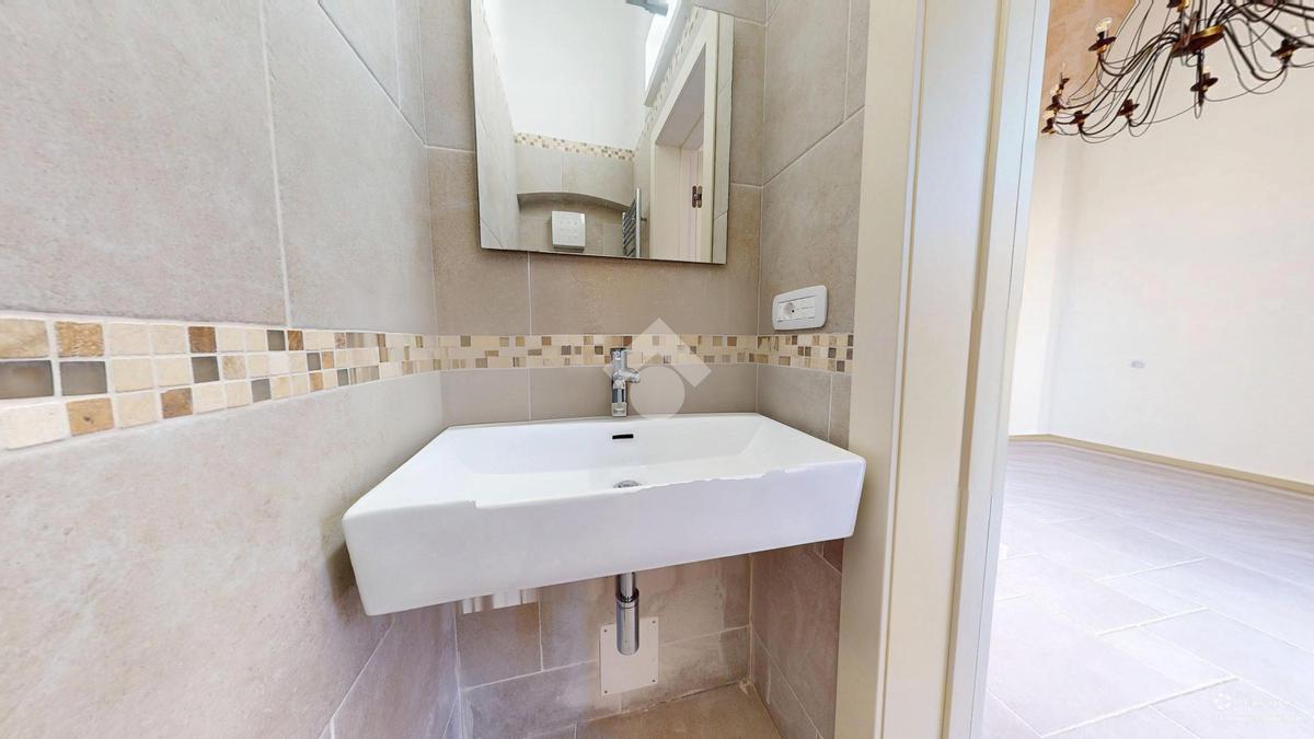 Gli spazi esterni includono un balcone e doppi terrazzini.