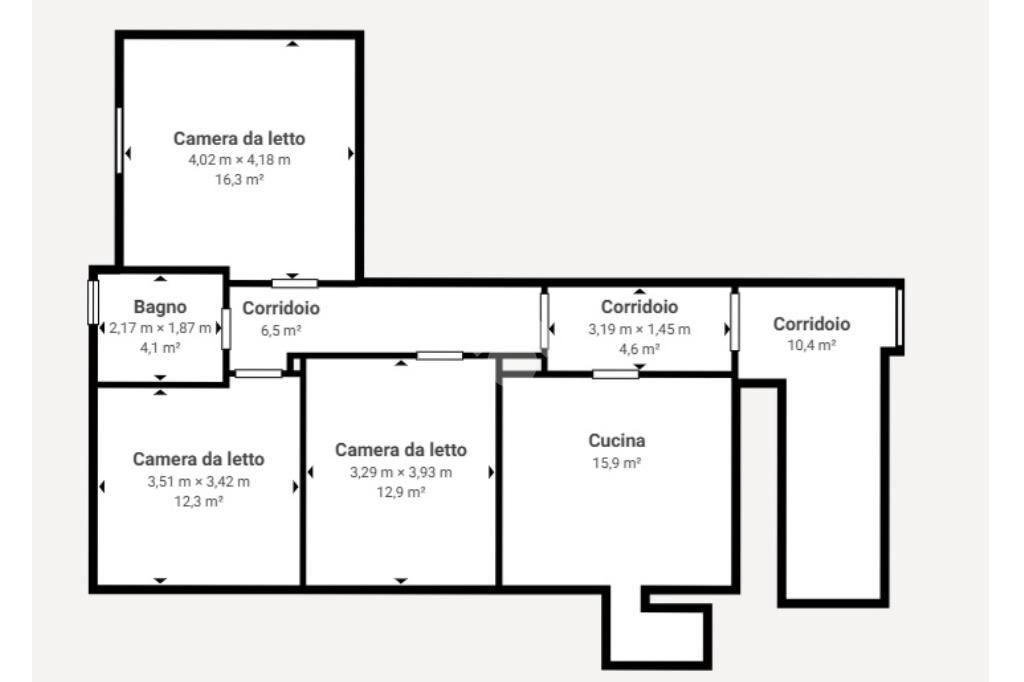 La zona notte si compone di tre camere da letto, tutte caratterizzate da metrature generose e da grandi aperture che affacciano direttamente sul balcone, garantendo una luminosità costante durante tutto il giorno.