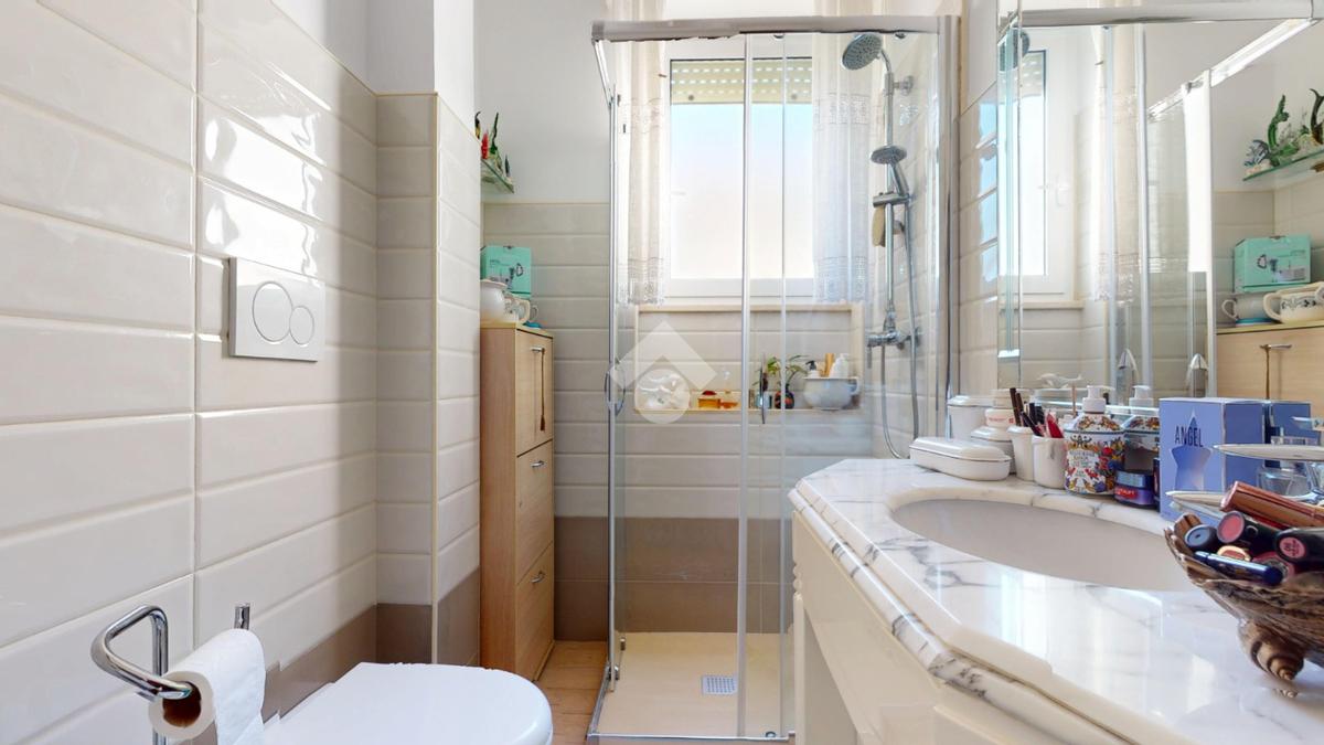 Il corridoio ci accompagna verso la zona notte, dove troviamo un indispensabile ripostiglio, un bagno ben curato con doccia, e due camere spaziose.