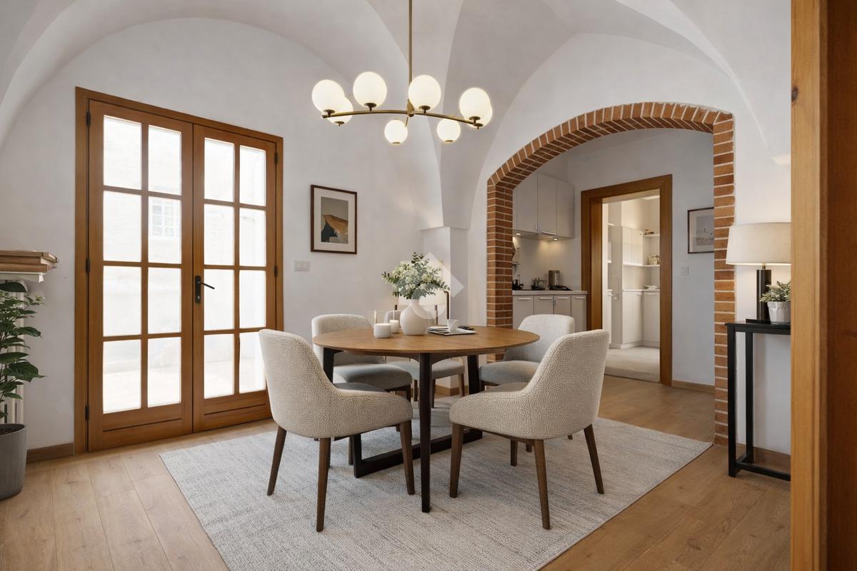 La casa presenta una grande sala di ingresso con le volte a stella dalla quale si accede poi alle altre stanze.