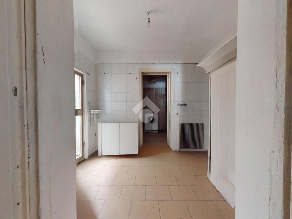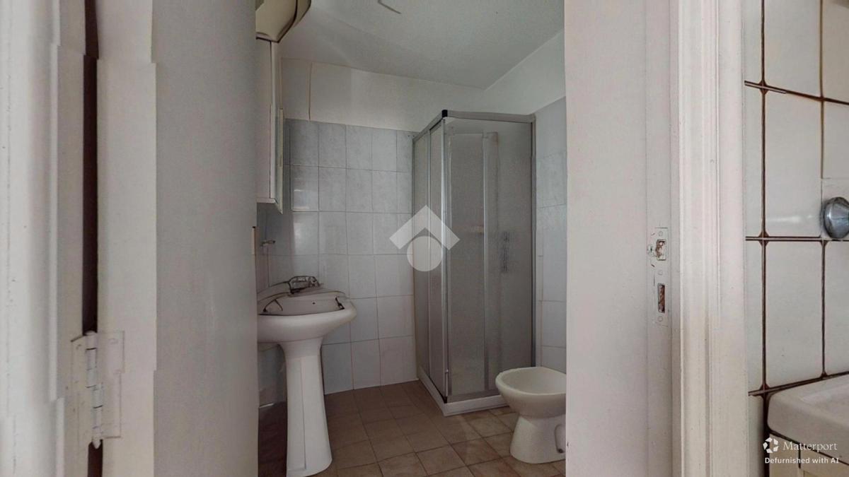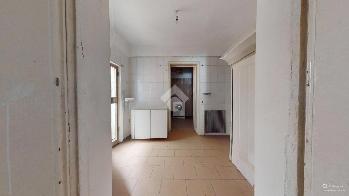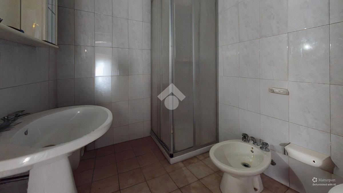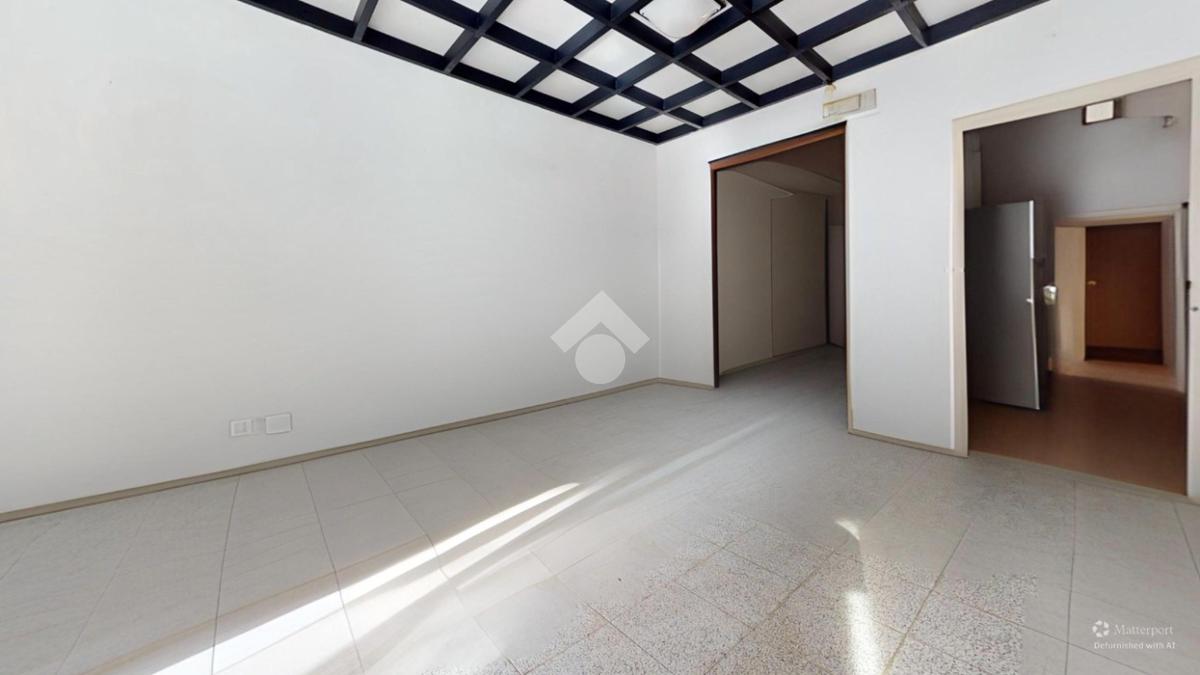 Qui la zona giorno si apre su un ulteriore grande open space con cucinotto distinto, affiancato da un secondo bagno e un piccolo ripostiglio.