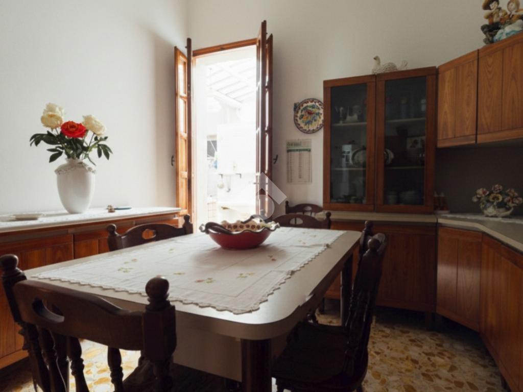 Proseguendo ci si ritrova nel cuore della zona giorno, dove una luminosa sala da pranzo con affaccio sull’ortale, uno spazio privato che regala respiro e luminosità a tutto l’ambiente.