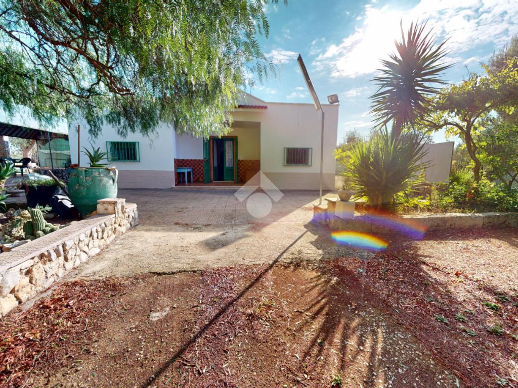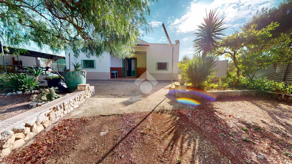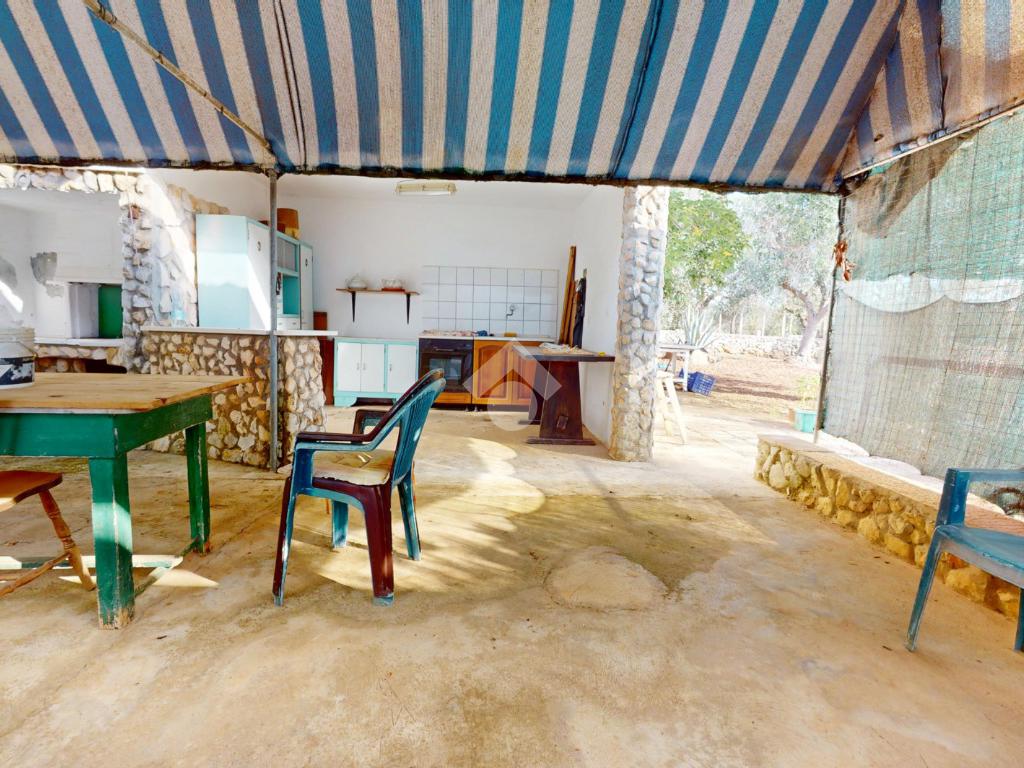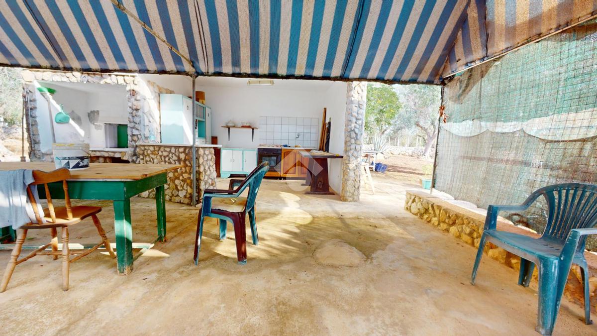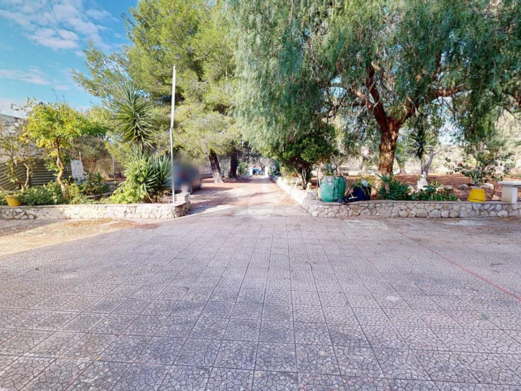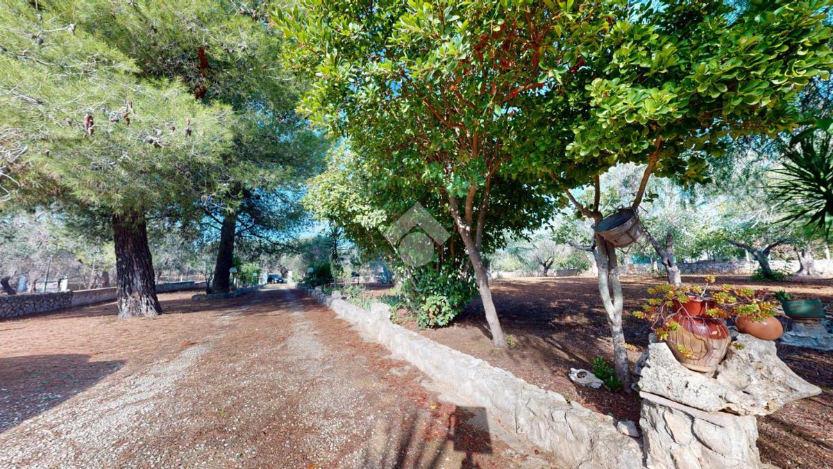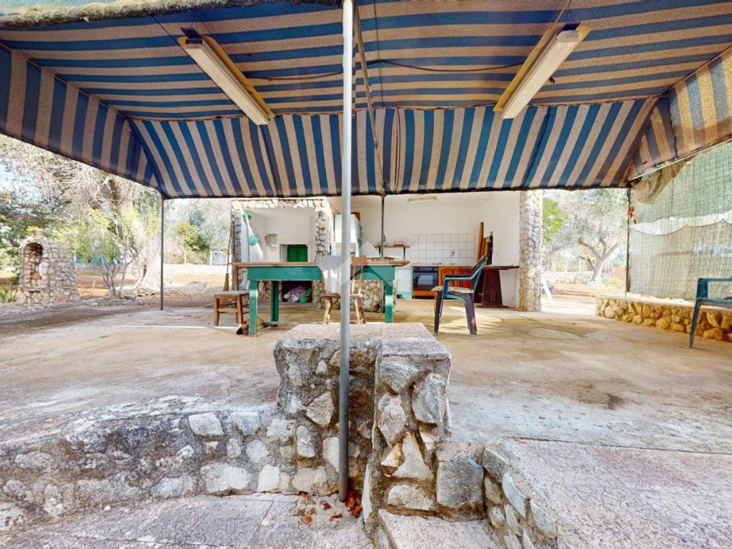 L'abitazione proposta si estende su un terreno di circa 4290 mq, servito da cisterna ed ornamentato da ulivi, alberi da frutto e piante mediterranee.