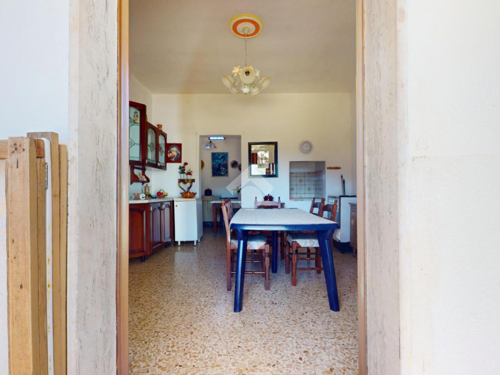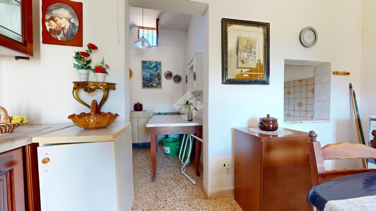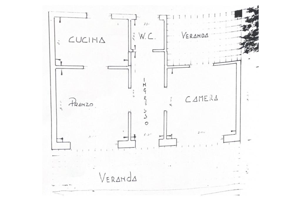Al centro sorge l'abitazione principale: un ingresso accoglie gli ospiti e funge da living, conducendo a un cucinotto separato e funzionale.