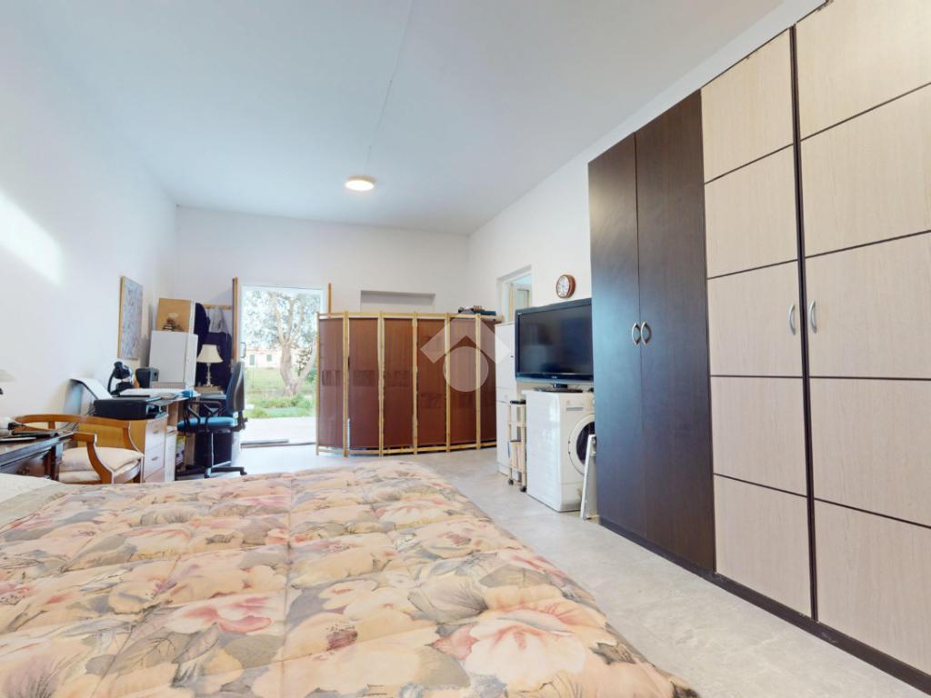 La zona notte ospita una camera matrimoniale dalle metrature generose, dotata di un secondo accesso indipendente verso l'esterno. Grazie alla distribuzione degli spazi, la camera può essere facilmente frazionata per ricavare due stanze distinte, adattandosi alle esigenze di una famiglia che cresce.
