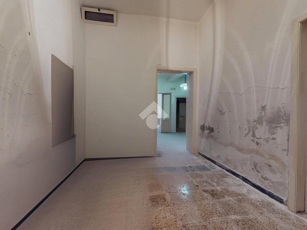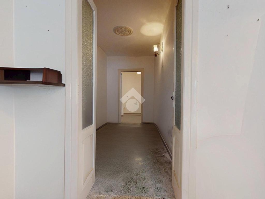 Un corridoio fa da ponte verso la parte più intima e conviviale dell'immobile: una sala da pranzo accogliente dominata da un camino,ideale per momenti di convivialità.