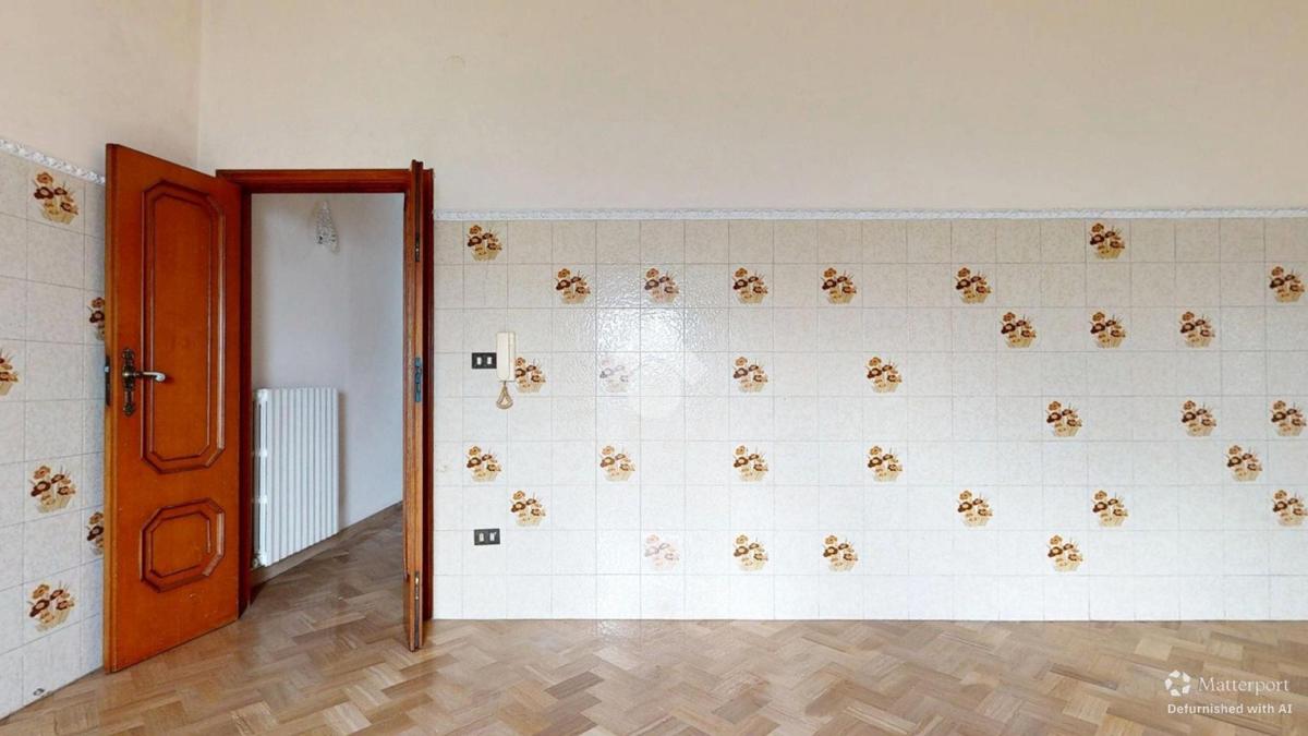 Adiacente ad essa, troviamo un cucinotto separato, funzionale e ben organizzato, che gode di un affaccio diretto su un ortale esterno, dettaglio che assicura luminosità e aria durante la preparazione dei pasti.