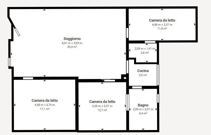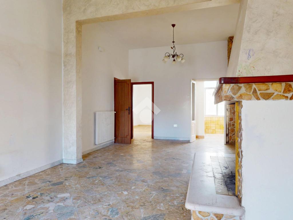 Entrando ci accoglie un open space con un grande camino,con una porta-finestra che dona luminosità in ogni angolo della dimora,dando accesso al balcone di pertinenza.