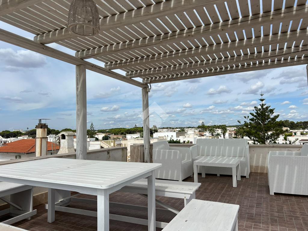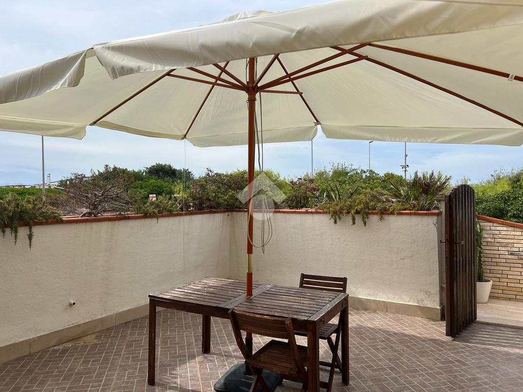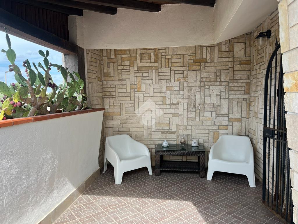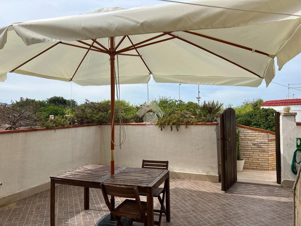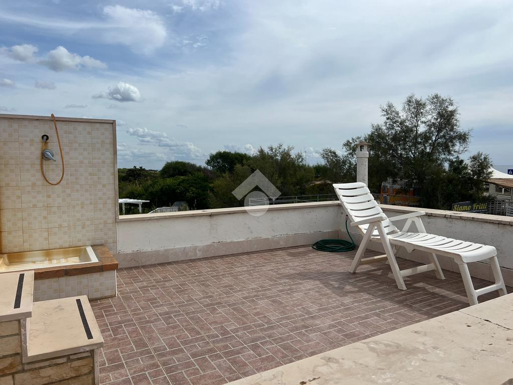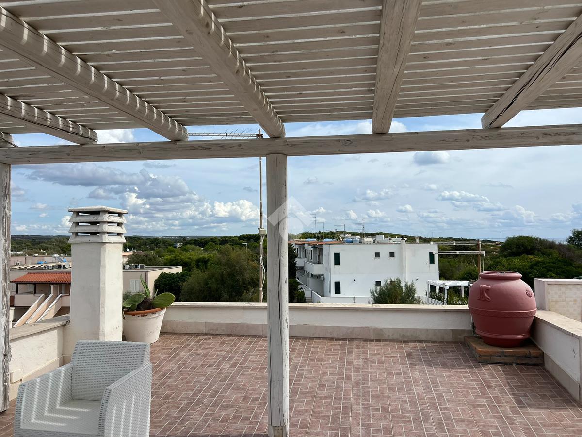 All’esterno una comoda lavanderia/ripostiglio, oltre al terrazzino principale, troviamo un secondo terrazzo più alto, attrezzato con pergolato: uno spazio spettacolare dove ammirare il panorama di Campomarino e il mare, perfetto per cene, relax e momenti di convivialità.
