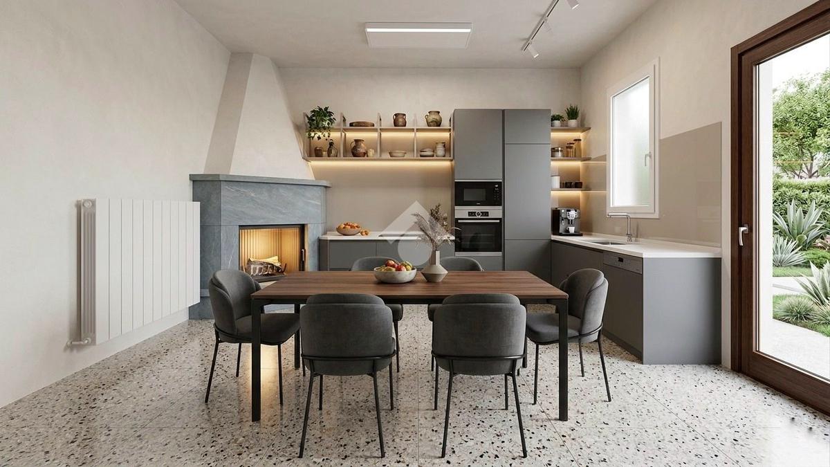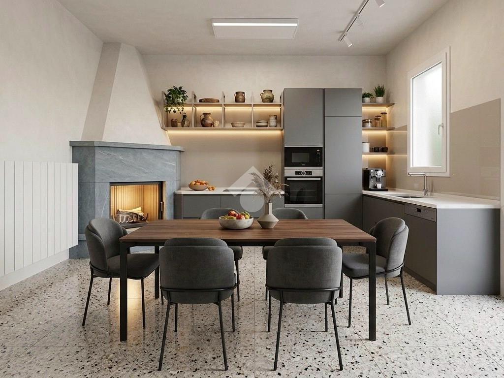 Il Cuore della Casa: La cucina, ampia e luminosa, è arricchita da un camino.