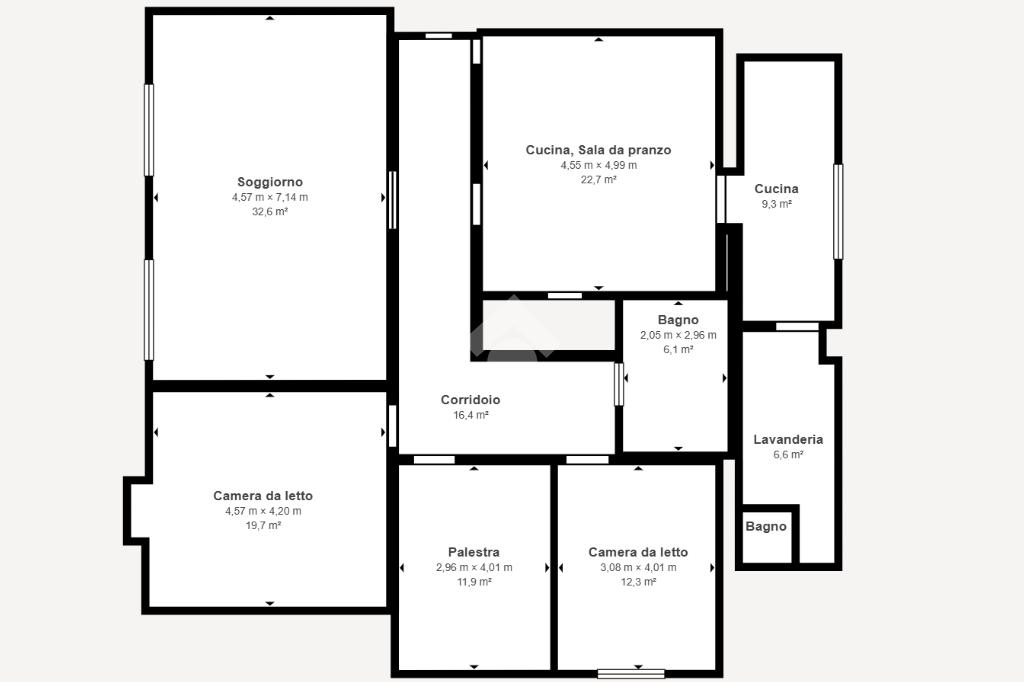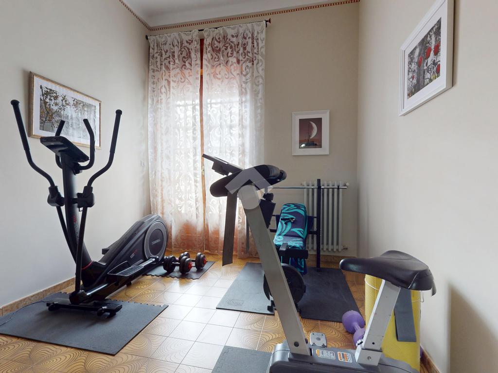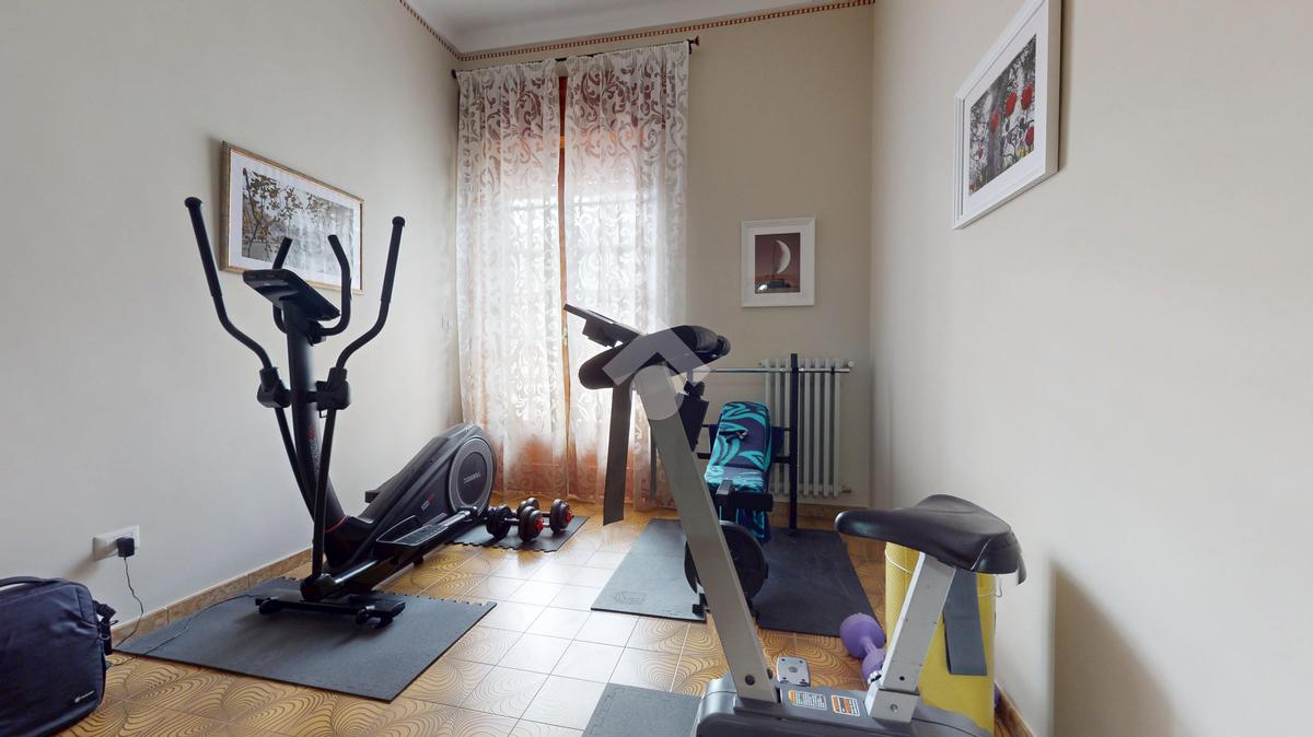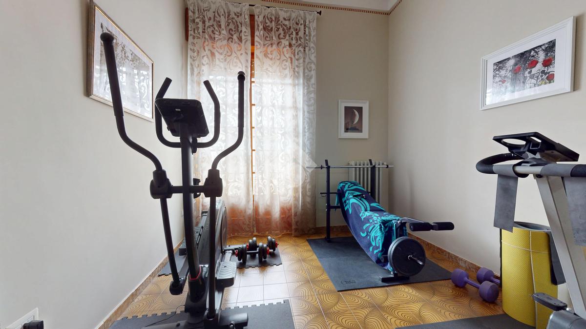 La zona notte offre una camera matrimoniale, una cameretta, un’ulteriore stanza attualmente adibita a palestra (con possibilità di utilizzarla come terza camera da letto) e il bagno principale.