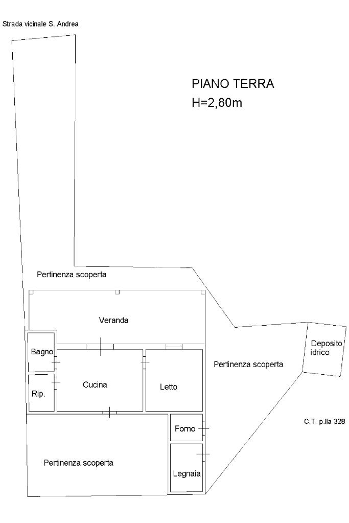 La casa è circondata da una pertinenza scoperta che si estende in un rigoglioso terreno di circa 3.000 mq, offrendo ampi spazi per il relax o per piccoli progetti agricoli.