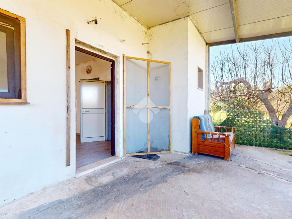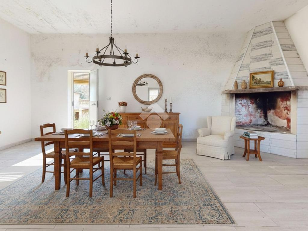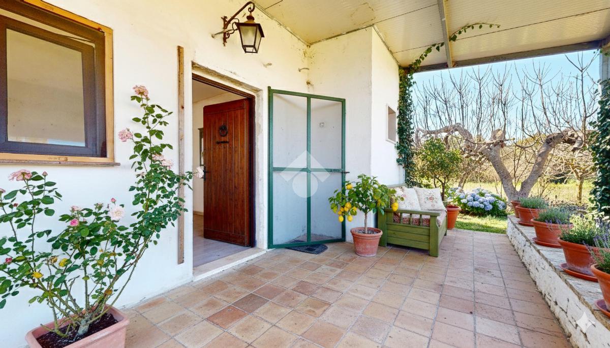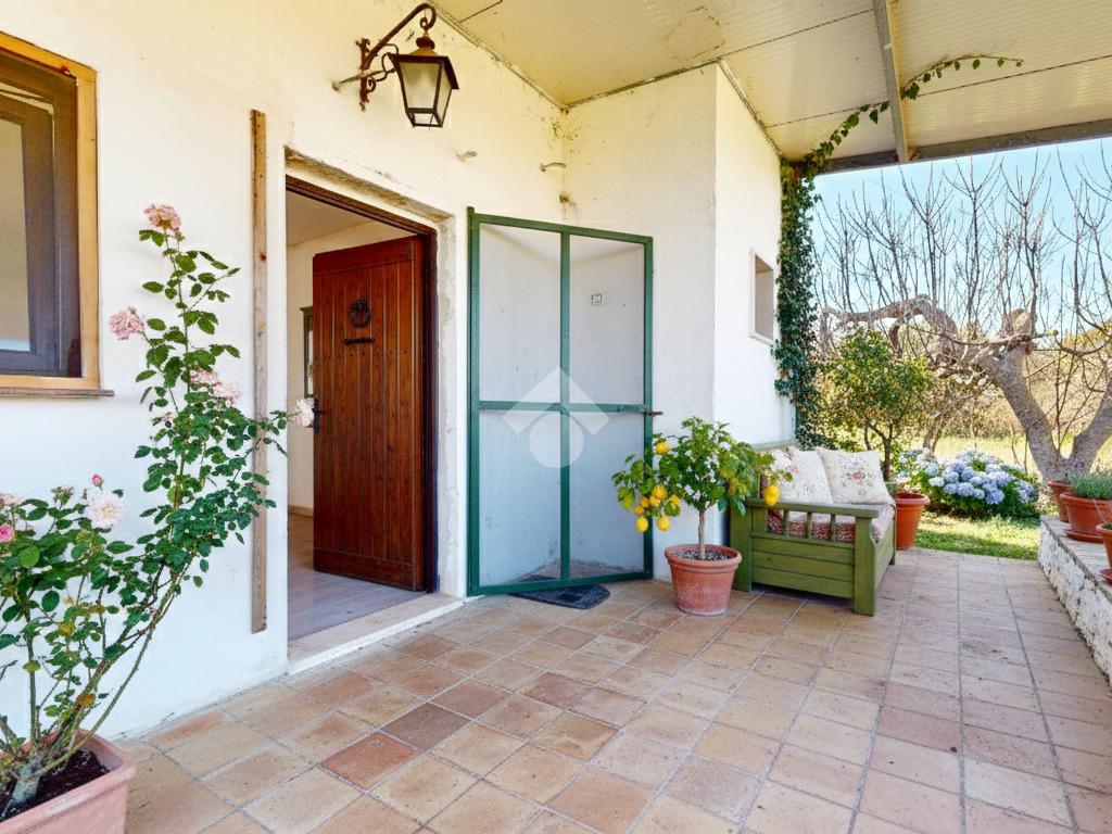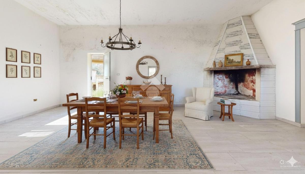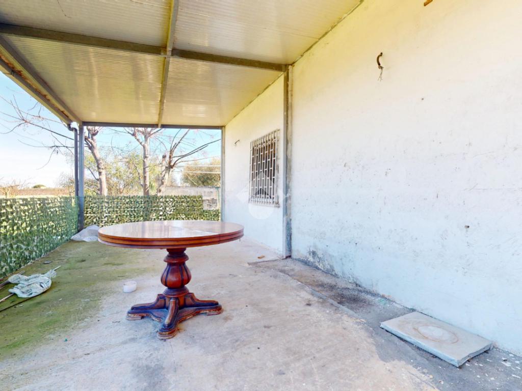L'ingresso principale accoglie i residenti attraverso una spaziosa veranda, un ambiente versatile che funge da filtro naturale tra il comfort domestico e la bellezza del paesaggio circostante, ideale per pranzi all'aperto durante le calde serate pugliesi.